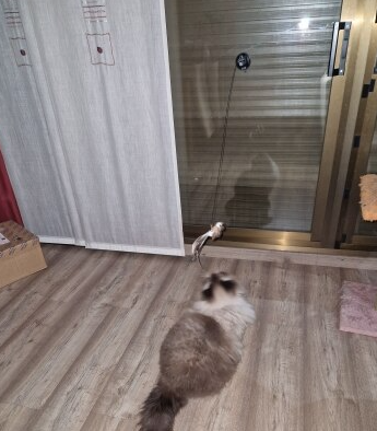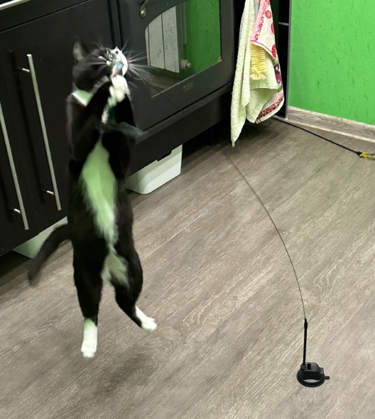 Mon chat d'appartement a enfin trouvé son défouloir ! Il saute, court et chasse pendant 30 minutes, ensuite il dort comme un bébé. Parfait !